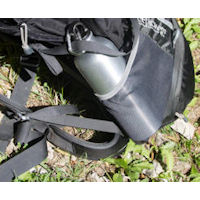 Thick plastic water bottle: sold for this purpose. Top seals well, thick plastic: rugged